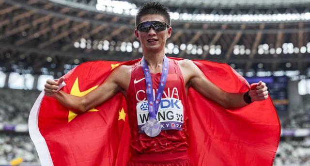 这中国田径队在本届世锦赛拿到的第四枚奖牌,同时也是中国选手自2015年世锦赛王镇拿下20公里竞走亚军之后,时隔十年再次拿到世锦赛男子竞走奖牌,10年,等了整整十年,赛后,王朝朝身披国旗庆祝,满满的喜悦,令人钦佩。