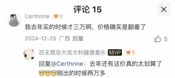 “去年9月份一冲动下手了,没多久价格猛涨,没想到当时一个冲动的决定节省了差不多10个W……”